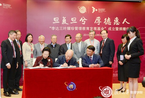 5月26日,“李达三叶耀珍管理教育发展基金”成立暨捐赠仪式在复旦大学管理学院李达三楼隆重举行。在复旦大学成立110周年,管理学院恢复建院30周年之际,李达三先生携夫人叶耀珍女士共同捐款1.1亿元人民币,设立“李达三叶耀珍管理教育发展基金”。这是复旦大学有史以来收到的最大一笔校友捐款,而且一次性到账,用于支持管理学院的建设与发展。