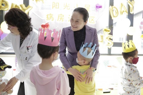 今年是“六一”国际儿童节66周年,副市长、市妇儿工委主任赵雯率市妇儿工委部分成员单位领导来到复旦大学附属儿科医院,代表市政府看望、慰问了住院的白血病患儿,为勇敢战胜疾病的小朋友颁发勇敢小战士奖、为六月过生日的小朋友们过集体生日、为病床上的孩子送上玩具等节日礼物,同时向长期耕耘在一线的医护人员致以亲切问候。市政府副秘书长、市妇儿工委副主任肖贵玉,市妇儿工委副主任、市妇联主席徐枫,市卫计委副主任王磐石,复旦大学附属儿科医院黄国英院长、徐虹书记、王艺副院长、盛锋副院长、张瑾副书记等陪同。