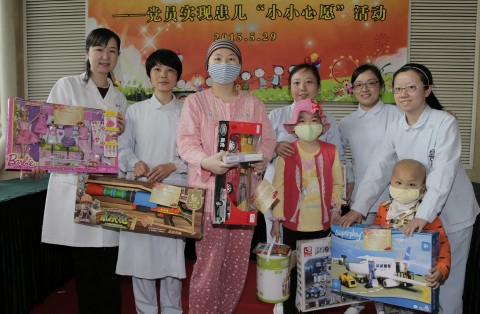 5月29日中午,我校附属儿科医院党员实现患儿小小心愿活动在门诊大厅举行,来自儿科医院14个党支部的党员代表、入党积极分子、各病区护士长、患儿和家长代表参加送心愿活动。每个党支部分别对接病区,发放并收集住院患儿的心愿卡。孩子们的心愿各式各样:“我病好后要去上学了,希望有个漂亮的小书包”、“我要能换装的芭比娃娃”、“我想拥有一条游来游去的小鱼,看着它游泳,我很开心”、“我要一套作文书,等我病好了,我要写一篇我和疾病战斗的文章,写好文章发表在报纸上”还有的要奥特曼、遥控车、长颈鹿……收集心愿后,党员们立马行动,各显神通,在最短的时间内购买礼物,满足孩子们的心愿,希望在六一儿童节来临之际,让孩子们拿到心仪的礼物。