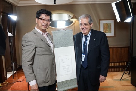 5月22日,在一年一度众人瞩目的“上海论坛2015”开幕前夕,外交部外交政策咨询委员会委员吴建民和意大利前经济财政部长Fabrizio Saccomanni一同被聘为复旦发展研究院国际顾问委员会委员。受聘仪式上,复旦大学副校长、复旦发展研究院常务副院长林尚立教授为吴建民先生和Fabrizio Saccomanni先生颁发了卷轴证书,同时聘请吴建民先生为复旦发展研究院董事会董事。林尚立教授还向他们介绍了复旦大学的悠久历史和发展现状,着重介绍了复旦发展研究院的组织架构,国际合作和未来展望。
