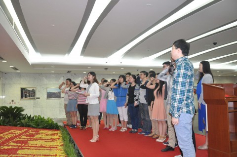 之后,所有获奖代表在领誓同学的带领下,共同面向党旗,举起右手,重温了入党誓词。响亮的誓词在一大会址内萦绕,代表着新一代青年人继承先辈遗志的决心和力量。