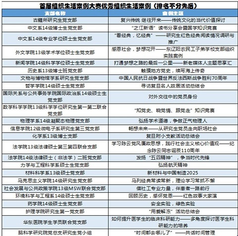 至此,持续近3个月的首届研究生组织生活案例大赛圆满落幕。本次案例大赛共有103个支部参与报名,经过初审(1场)、复审(1场)、现场观摩(44场)、终审答辩(5场)四个环节,步步为营,有序推进。研工部在每个环节结束后都及时总结归纳存在的问题,并及时向支部反馈意见,指导提升,并联合红帆工作室组织两次全体培训,确保了最终提交案例的质量。最终,24个优秀案例脱颖而出,其中包含了理论学习类、时政热点类、个人发展类和志愿服务类等各种形式和内容,为我校研究生党支部组织生活的规范化和创新性提供了富有价值的参考范本。研工部将把优秀案例汇编成册,供全校研究生支部学习借鉴。