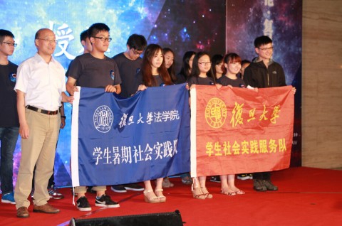 诗歌朗诵之后,现场举办了法学院学术暑期社会实践出征仪式。2011级毕业生、第十七批研究生支教团团员阿依帕丽同学代表实践队成员发言。校团委副书记王安华老师、法学院副院长潘伟杰老师为社会实践队员授旗并寄语,祝福暑期社会实践活动顺利开展。