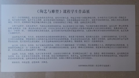 2015年6月23日,复旦大学本科生通识教育核心课程第七模块艺术创作与审美体验中《陶艺与雕塑》课程作品展,于复旦大学光华楼志承堂西南侧展厅正式开展。