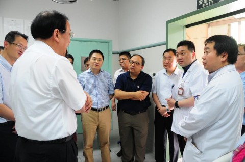 6月25日下午,国家卫计委王国强副主任率队莅临华山医院,调研“上海市脑卒中预防与救治服务体系”建设工作情况。上海市卫计委沈晓初主任、王磐石副主任、复旦大学桂永浩副校长、华山医院丁强院长、马昕和毛颖副院长陪同调研。