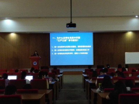 2015年6月23日晚18:00-19:00,生命科学学院在江湾生科楼F区报告厅举行了全院学生党员的“三严三实”党课教育,学院党委副书记蒋蕾老师作为党课主讲人主持了会议。