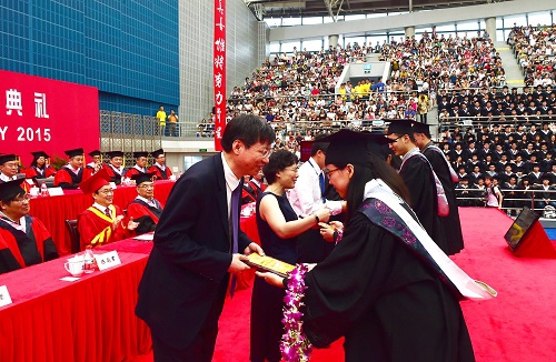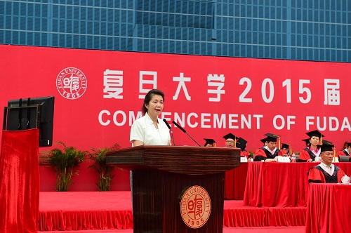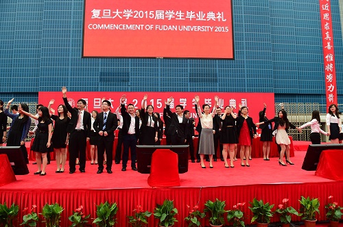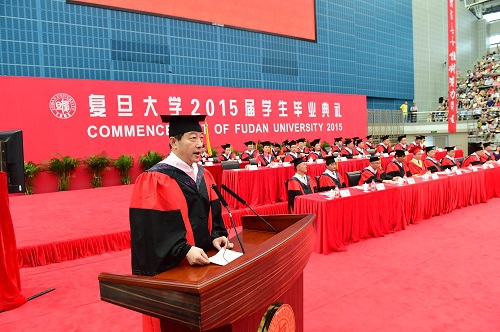 7月3日上午,复旦大学2015届本(专)科毕业典礼在复旦大学正大体育馆举行。2015届全体本(专)科毕业生,学校领导、教师代表、各院系党政领导、部分机关部处负责人、毕业生家长代表等近4000人出席典礼。