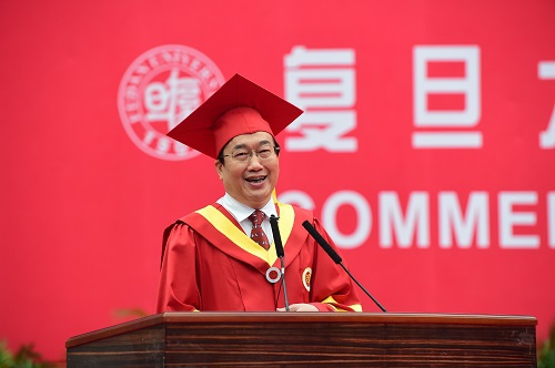 最后,许宁生校长发表了演讲,他寄语全体毕业生,希望复旦的同学们在今后人生中要常怀感恩之心,追求自身价值观的不断完善与提升,牢记“博学而笃志,切问而近思”校训,继承发扬“团结、服务、牺牲”的复旦精神,追求梦想,为祖国繁荣发展和人类文明进步作出自己的贡献!他还叮嘱同学们常回家看看,复旦永远是你们的精神家园。最后,许宁生校长祝全体2015届毕业生毕业愉快,前程似锦!