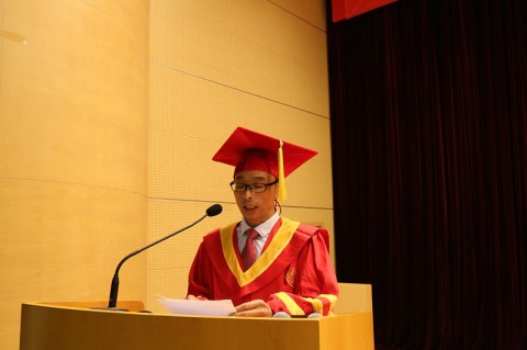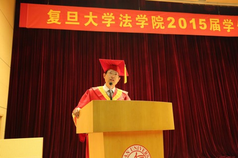 典礼最后,法学院院长孙笑侠老师为2015届毕业生寄语。孙院长从近年来法学院学子的发展方向入手,总结了在时代背景下法律人所具有的共同特质。孙院长提出法律人应当随时紧握手中宝剑,坚守心中美德,并带着这两份宝物去实现法律人自己的梦想,实现时代和社会的法治梦想。孙院长深切鼓励毕业生们无论走多远,都不要忘记为什么出发,绝不能丢掉自己的知识与美德,并衷心祝愿法学院2015届毕业生毕业快乐、前程似锦!