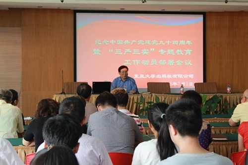 7月1日,出版社党总支举行纪念建党94周年暨“三严三实”专题教育工作动员部署会议,董事长兼总经理王德耀向全体党员讲了一次党课。他首先传达了校党委朱之文书记党课报告的主要内容,紧扣“三严三实”的内涵,结合教育部有关文化企业发展的最新精神,联系出版社工作实际,阐述了不同岗位党员践行“三严三实”的具体要求。他希望全体党员特别是班子成员深入学习习近平总书记系列重要讲话精神,认真研读党章和党的纪律规定,牢固树立“作风建设永远在路上”的理念,把“严”和“实”的要求内化于心、外化于行,进一步加强内部管理和制度建设,努力在真抓实干、推动改革发展上见实效。