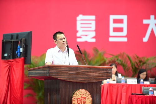 许宁生校长在讲话中代表学校全体师生对新生的到来表示热烈欢迎。他强调了作为复旦研究生的使命感和责任感,鼓励在场同学要敢为人先,鼓起勇气,成为学校学术创新和技术创新的主体。许校长回顾了复旦大学创办和发展的历史,教导大家要读懂校训,用心铭记,一生践行,并勉励在场学生承担起复旦人的共同使命,珍惜时间,刻苦学习,发扬创新精神,为复旦的发展添砖加瓦。最后,许校长期待全体研究生能够领悟创新的真谛,为人类文明的进步做出更大贡献。