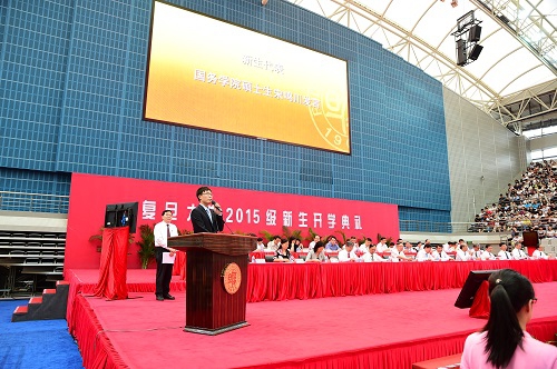 9月6日上午,复旦大学2015级研究生开学典礼在正大体育馆隆重举行。全体研究生新生参加了开学典礼。校党政领导、教学指导委员会、学术委员会、学位评定委员会负责人、新任博士生导师、教师代表以及各院系和机关部处负责人应邀出席典礼。