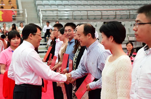 除了导师以外,辅导员也始终陪伴着研究生的校园生活。校党委副书记尹冬梅老师宣读了2015级研究生辅导员名单。随后,校党委书记朱之文为辅导员代表颁发了代表责任和使命的聘书。