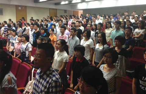 9月3日上午,学工部组织在校学生齐聚光华楼东辅楼102袁天凡报告厅,集体观摩阅兵式,袁天凡报告厅主会场有近300名同学观看,不少路过的同学被现场气氛所感染,纷纷席地而坐,一起观看阅兵。除主会场外,经济学院、材料科学系、基础医学院等院系也设置了分会场,全校共有1200多名在校学生参加。本次集体观摩阅兵式的同学大多数是2015级新生,刚迈入大学校门,他们对自己的大学生活满怀憧憬,一场盛大的阅兵仪式无疑是最好的爱国教育。