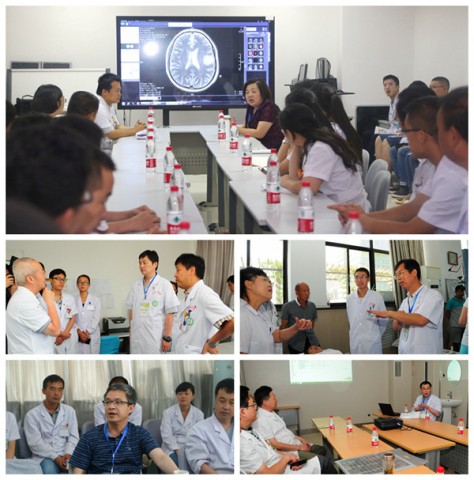 在放射科,耿道颖副书记对疑难病例进行了细致的会诊,并就放射科医生临床思路的养成、科研思路的创新进行了专题讲座。在神经内科、神经外科,赵重波教授与顾宇翔教授对每一位住院病人进行了详细的体格检查,并给予了病情分析与治疗建议,两位教授还分别就《免疫抑制剂在神经内科疾病中的应用》、《神经内科临床与科研融合创新》、《脑血管疾病的显微外科治疗策略与进展》等专题进行授课。在内分泌科,周丽诺副教授就内分泌科治疗最新的指南、理念进行了讲课,并对每一例疑难杂症进行系统分析、给予治疗建议。在皮肤科,听说华山专家要来,许多病人排队等候在诊室门口,请专家“仔细看看”。在省人民医院中法神经康复室,康复医学科白玉龙教授对每一位病人给予了康复治疗建议,并以《脊柱损伤的康复治疗》为主题为当地医生进行了授课。在肾病科,薛骏教授参加疑难病例讨论,包括重症SLE妊娠合并围产期心肌病,老年血管炎,难治性肾病综合症,血液透析并发症的诊治等。在风湿病科,张炯副教授结合两篇拟投SCI的论文,就当地医院风湿科临床与科研的发展方向进行了整体性的建议。