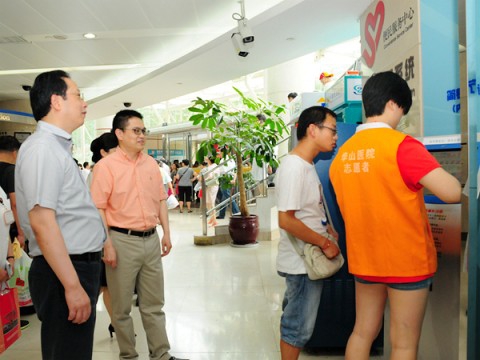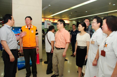 8月20日,市委宣传部副部长、市文明办主任潘敏与市总工会、团市委、市妇联、市教卫党委、市卫计委和上海市志愿者协会等单位20余位领导来到华山医院门诊,在华山医院院长丁强、党委书记顾小萍、党委副书记耿道颖的陪同下慰问了在高温天气中坚持参加志愿服务的志愿者代表。