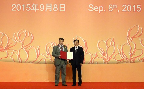 2015年度白玉兰纪念奖授奖仪式于9月8日在静安香格里拉大酒店举行,上海市外办张小松主任为获奖者颁发了奖章及荣誉证书。Alastair Murchie教授参加了授奖仪式。