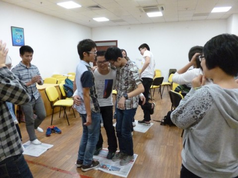 接着,同学们就进入到了有趣的游戏环节中。有迅速增进彼此了解的串名字游戏,有考验游戏者语言智慧的嘻哈一刻,还有拼合作拼创意拼反应能力的 “抱团打天下”活动。此起彼伏的笑声萦绕在511教室。