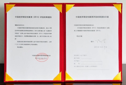 2015年10月12日,经过两轮投票,复旦大学经济学院院长张军教授作为“过渡经济学理论”的主要贡献人之一,与林毅夫,樊刚一起以高票获得第七届中国经济理论创新奖。中国经济理论创新奖组委会秘书处已于19日下午到复旦大学经济学院举行了当面通知获奖的仪式。11月13日,组委会将在深圳大梅沙举办“中国经济学家年度论坛暨中国经济理论创新奖(2015)颁奖典礼”。