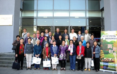 千万里山水挡不住校友思家情,数十载风云掩不住母校牵挂意。各界校友在志愿者的引导下参观了复旦大学张江校区与药学院,并合影留念。