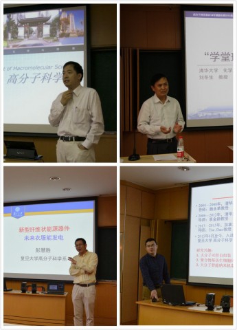 在全体观看“聚合物分子工程国家重点实验室”宣传片后,高分子科学系副系主任何军坡教授首先致辞,欢迎清华大学化学系师生前来参观交流并介绍了复旦大学高分子科学系拔尖人才计划的基本情况。清华大学刘冬生教授在随后讲话,介绍清华学堂班的实施经验,并寄语两校学生增进交流,共同学习。接着,清华本科2008届、博士2012届校友、高分子科学系今年引进的闫强研究员和教育部长江学者获得者、副系主任彭慧胜教授分别给同学们作了题为《大分子自组装对细胞运动的模拟》和《可穿戴织物的前沿动态》的前沿学术报告。精彩的报告引发了在场复旦和清华学子的踊跃提问和积极讨论。