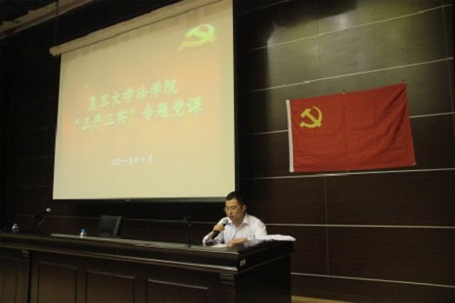 根据《复旦大学学生党员“三严三实”学习教育方案》,10月21日晚,法学院学生党总支组织开展了“三严三实”专题学习党课。本次党课由学院党委副书记、学生党总支书记罗霄老师主讲,2014级法律硕士(非法学)班辅导员孔凡洲老师主持,学院学工组长陆优优老师、学生辅导员、学生党员、入党积极分子出席了本次党课活动。