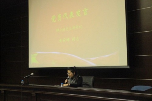 博士班党支部书记黄莉娜同志从两个小故事谈了对“三严三实”的理解,一则是曾经监考时有考生作弊,另一则是北大的女博士因学术不端行为被收回学位。她以此提醒大家要学术严谨,注重求实,切实落实“三严三实”。
