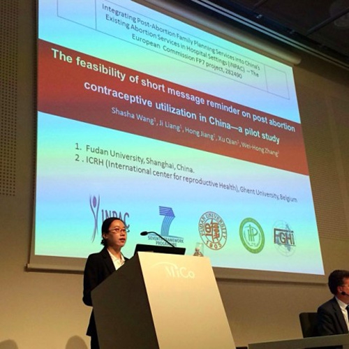 会议中,硕士研究生王莎莎就研究“The feasibility of short message reminder on post abortion contraceptive utilization in China—a pilot study”进行了口头汇报。该研究通过随机对照试验,探索手机短信作为流产后保健服务的可行性,引起了与会者的广泛兴趣。蒋泓副教授则通过电子海报交流的形式介绍了“Opportunities, challenges and systems requirements for developing post-abortion family planning services: perceptions of policy maker, managers and health services providers in three provinces in China”。