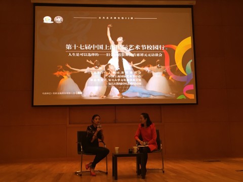 新闻中心讯 2015年10月26日下午,第十七届上海国际艺术节校园行活动《人生是可以选择的——旧金山芭蕾舞团首席谭元元访谈会》 暨公共艺术课堂第52课在美国研究中心谢希德报告厅举行。该访谈会由上海市教育委员会、中国上海国际艺术节主办,复旦大学文化建设办公室、团委学生艺术团办公室承办。上海国际艺术节中心艺术教育部、复旦大学党委宣传部、团委等相关负责同志一起出席活动。