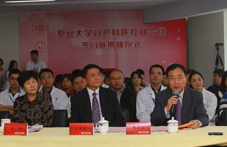 上海市卫生计生委副主任王磐石,副校长、上海医学院院长桂永浩,以及上海医学院、校医管处、附属华山医院、附属妇产科医院有关负责人,在成立仪式上为妇产科医联体揭牌。市卫生计生委和学校医科有关职能部门负责人参加成立仪式。“妇产科医联体采用专科医院联合综合医院共同发展的横向医联体模式,引导大学系统内各附属医院‘整合资源、服务医改、提升品牌、共谋发展’,是上海推进分诊工作、解决群众就医难问题的重大创新。”王磐石如是说。