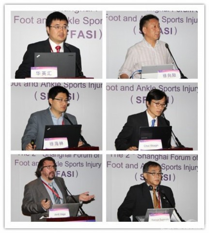 本次论坛邀请到美国Duke大学附属医院运动医学科主任、美国运动医学学会现任主席Ned Amendola教授、韩国Yosei大学Severence医院足踝外科主任、韩国足踝外科学会秘书长Jin Woo Lee教授、西班牙Asepeyo San Cugat医院足踝外科Jordi Vega教授、日本奈良大学足踝外科Kazuya Sugimoto教授以及来自全国各地20余名著名运动医学、关节镜及足踝外科专家分享当前国内足踝运动损伤的诊断、影像学检查以及微创诊疗技术的最新理论和进展,并着重就踝关节不稳定、踝关节骨软骨损伤和跟腱损伤等疾病的微创外科治疗中各个热点问题和经验心得进行深入探讨。Ned Amendola教授、Jin Woo Lee教授和大会主席、第三军医大学西南医院唐康来教授(由陶旭教授代讲)、北京积水潭医院骨科武勇教授、上海同济大学附属同济医院骨科俞光荣教授、上海交通大学医学院附属瑞金医院骨科徐向阳教授、北京大学人民医院创伤骨科徐海林教授和华英汇副教授等专家分别授课。来自中、美、日、韩、西班牙等国的多名专家针对踝关节不稳定、踝关节软骨损伤及跟腱损伤治疗与康复等主题用精彩的手术录像展示他们各自最具特色的精湛手术技巧并作详细讲解。