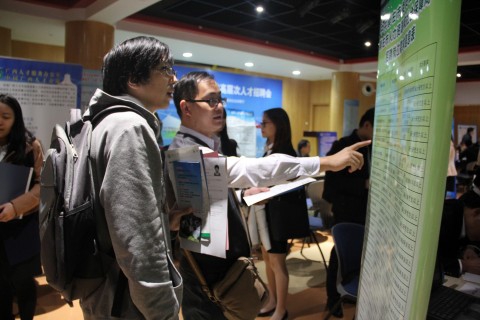 与此同时,在光华楼学生广场,来自广西自治区部分紧缺行业的45家单位开展了2015年广西重点领域急需紧缺高层次人才招聘会,并在现场为复旦学子简化应聘手续,受到了应聘者们的大力欢迎。除了复旦学子,还吸引了周边高校的毕业生参加,现场气氛热烈。为配合本次宣讲及招聘活动,学生职业发展教育服务中心在校园内开展了西部就业宣传之广西篇的图片展览,使同学们有更多机会深入了解日新月异的广西自治区。