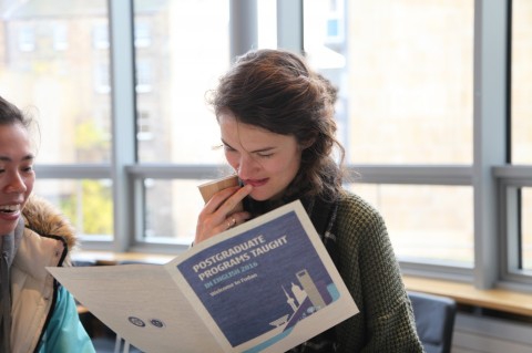 爱大学生正在仔细阅读复旦大学留学生招生资料