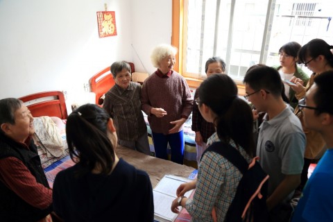 下午2点,同学们一起向敬老院出发。志愿者们到达敬老院后在负责人的安排下分成三个小组分别进入老人们的房间。和蔼可亲的爷爷奶奶们虽然年龄大了,可是依然显得很精神,一见到同学们就连忙站起来和大家握手。随后,志愿者和老人们聊起了家常,尤其是谈到解放战争时期的事情,老人们更是绘声绘色,激动万分。同学们听得认真,还不时作出回应。听罢爷爷奶奶讲述他们的故事,志愿者们开始进行节目表演,歌曲和舞蹈都是七、八十年代的经典,老人们笑逐颜开,有的甚至手舞足蹈。看着他们仿佛重返青春,志愿者们打从心底里感到自己的价值。欢乐时光总是短暂,临走前,爷爷奶奶紧紧握住同学们的手,不舍之情溢于言表。