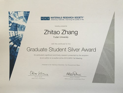 美国材料研究学会成立于1973年,总部位于美国,目前拥有来自世界71个国家的16000多名会员,是材料、物理、化学、生物、能源等多领域最富盛名的国际学术组织。该组织每年在美国举办两次大型会议,每次参会人员达到上万人之多。为了鼓励和表彰博士生在材料及相关领域做出优秀的研究成果,MRS自2002年起设立优秀博士生奖,通过个人申请和层层选拔,从世界范围内评选出一批优秀的博士生,在年会上公布评选结果并举行隆重的颁奖典礼。