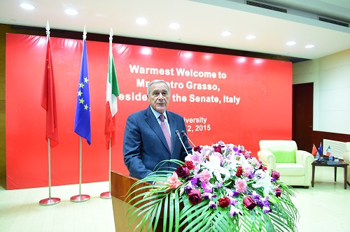 12月12日上午,意大利参议长格拉索先生和夫人一行在全国人大内务司法委员会副主任委员陈秀榕陪同下访问我校。