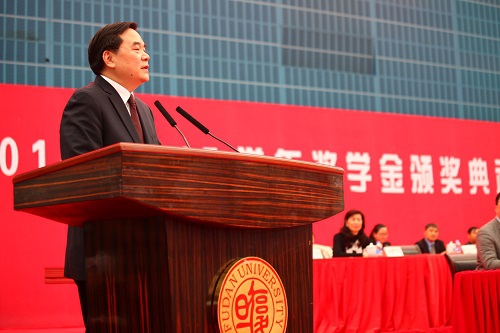 12月15日下午,“守训笃实——复旦大学2014-2015学年奖学金颁奖典礼”在正大体育馆举行。奖学金颁奖典礼作为我校学生的三大典礼之一,旨在鼓励品学兼优、奋勇拼搏的复旦学子,在全校形成一种勇攀高峰、不断创新的氛围,激励全校学生潜心向学,不断超越自身,对国家和社会有所贡献,成为无愧于时代的复旦人。