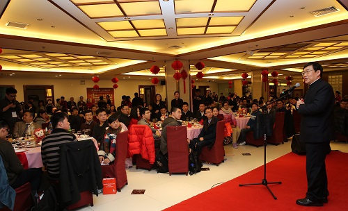 迎春会上,许宁生校长发表了热情洋溢的祝酒辞,向全校师生致以节日的问候与祝福,并介绍了2015年我校在学校建设、学术研究与人才培养等方面取得的优异成绩。许宁生校长表示, 2016年是“十三五”的开局之年,作为复旦的一份子,我们要牢记国家和人民的重托,更加坚定地担当起复旦的历史使命,大力推进各项改革,努力培养一流人才,产出一流成果,作出一流贡献,共同为建设中国特色世界一流大学而不懈奋斗。同时,许校长对我校发展提出了“尖、优、强、大、美”的美好愿景,并希望通过全校师生的共同努力,逐步使这个梦成为现实。幽默风趣的许校长不时与在座教师同学互动交流,气氛热烈,同学们也深受鼓舞,热情高涨。