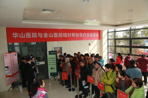 上午9时,金山医院门诊大厅已经排起了长龙般的队伍。8名华山医院的专家从市区赶来来不及休息就投入到紧张有序的工作中。他们分别来自消化内科、骨科、神经内科、心血管内科、内分泌科、呼吸内科科、皮肤科。专家们认真仔细的询问前来就诊的病人情况,并用他们丰富的临床知识为病人答疑解难,共为152名患者进行诊治。与此同时,医院的志愿者为68名患者测量血压,发放各类健康宣教书籍450余本。下午,在核化三楼会议室,华山医院向阳副处长与杨帆副教授分别为金山医院的医生们上了精彩一课。授课结束后,提问声络绎不绝。