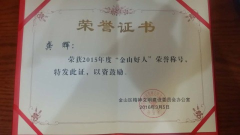 2015年,金山区深入开展“我推荐、我评议身边好人”活动。经过全区宣传发动、组织推荐、网络点赞、专家评审、媒体公示等程序,最终产生了38名“金山好人”。“金山好人”来自社会的各个领域,其中许多就工作生活在我们身边,他们的先进事迹生动感人,他们代表着当今公民道德行为的主流,是中华民族传统美德和时代精神的践行者。