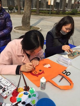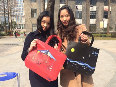 活动于当天中午正式开始,包括手绘环保购物袋及趣味问答两个环节,同学们纷纷参与到活动中。大家可以根据自己创意和设想用画笔自由创作环保购物袋,并在环境保护承诺书上签字。同学们创作热情高涨,有的还结合植树节主题设计标语,宣传绿色理念。同时,书院学生自管会还以“绿色”、“春天”、“树木”为主题设计趣味问答,内容包括古诗、成语、常识等,并设置精美礼品鼓励同学们前来参与,完成任意一项的同学都可以领取一盆绿色小盆栽。