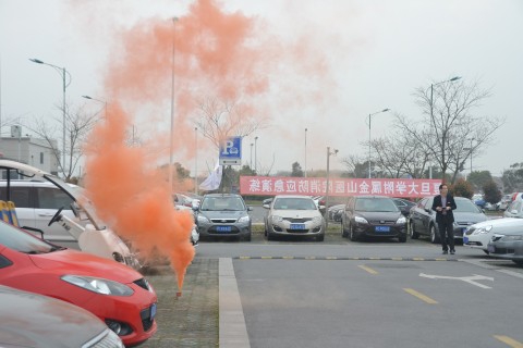 3月18日下午3点,随着演练总指挥黄祖烈一声令下,演习正式开始!只见停车场内一辆私家车突然冒烟,一会儿浓烟滚滚,车场保安人员发现后,立即呼叫消控室,并就近取来灭火器灭火。消控室接到报警后,立即拨打119进行报警,并迅速通知相关部门。应急小组接警后,立即启动应急预案,各参演人员各司其职,迅速达到预定位置。疏散组赶到现场立即疏散转移起火车辆周边的车辆,专职消防队员们手提消防喷水带赶往着火的车辆灭火。经过10分钟的紧急扑救,大火被扑灭。现场整个演练过程持续了15分钟,消防演练取得了圆满成功。