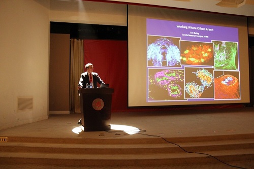 埃里克在讲台上时常“语出惊人”,却又发人深省。他凭借在在荧光超分辨显微成像技术(Super-Resolution Florescence Microscopy)领域的突出贡献获得了诺贝尔奖,而他认为:一方面,虽然凭借光敏定位显微镜技术(PALM)获奖,但他追求科技上的不断突破,希望为现实的生物研究带来革命,因此对该技术在应用上的不足感到不满;另一方面,他认为在同一领域还有许多辛苦工作,并做出同等贡献的同行,而诺奖只能给予少数几个人,这是很令人遗憾的。