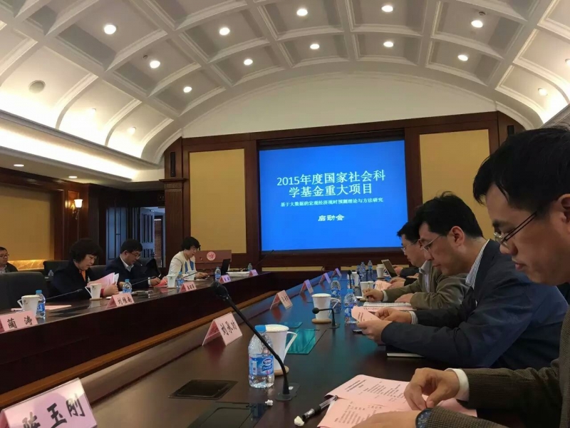 2016年3月19日,由复旦大学经济学院、大数据学院教授吴力波领衔的国家社科基金重大项目“基于大数据的宏观经济现时预测理论与方法研究”启动会在复旦大学子彬院二楼会议室举行。校党委副书记刘承功、上海市哲学社会科学规划办公室主任李方安、国家统计局贸易外经统计司副司长蔺涛、国家统计局上海市调查总队总队长刘稚南、上海市发改委总经济师秦丽萍、校大数据学院院长范剑青、校文科科研处相关负责人,以及来自中国社科院、中国人民大学等机构的知名专家出席了本次启动会。启动会由项目负责人,复旦大学经济学院教授吴力波主持。