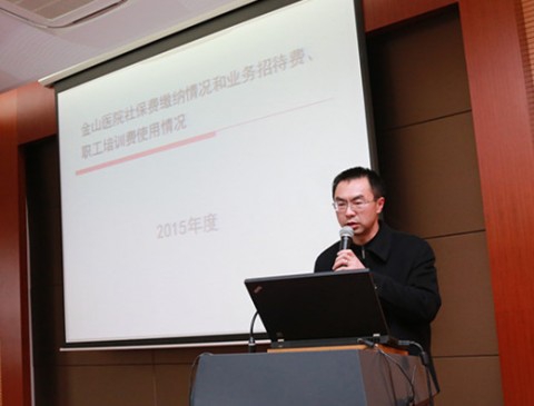 随后,金山医院副院长桂律及工会经费审查委员会主任赵波分别作《2015年金山医院教育经费使用、招待费及职工四金缴纳情况》及《2015年工会经费审查》工作报告。