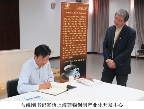 自由讨论环节中,参与活动的高校教授、学生,诺华、强生等多家企业的专家和技术人才们与苏虞企事业代表就如何实现创新创业等话题进行了热烈的讨论。活动尾声,马维刚书记在上海药物创制产业化开发中心留言册上为中心留下珍贵寄语,并与大家合影留念。