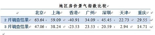 从房价景气指数来看,与2月调查相比,内陆各代表城市房价景气指数均有所下降。本期北京房价景气指数最高,为42.06。孙立坚教授认为,“受到国家稳增长措施的影响(铁路基建,便利电子商务,通讯,电信的基础设施及建设)和一线城市房产市场对资金的吸引的作用,样本城市景气指数呈现出明显回暖的态势。”