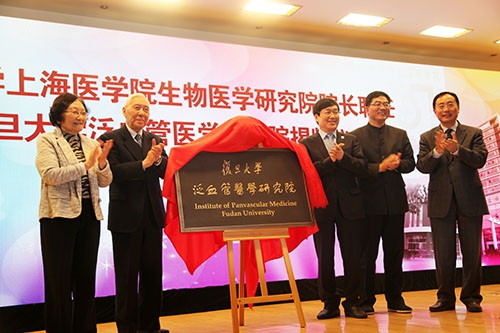 许宁生、桂永浩、陈灏珠、闻玉梅、葛均波共同为泛血管医学研究院揭牌。陈灏珠受聘担任泛血管医学研究院顾问委员会主席。葛均波兼任泛血管医学研究院院长。闻玉梅、丁健在致辞时表示,这是一项富有创新性的研究,体现了“中西结合”的思维,期待其能在科学研究方面取得丰硕的成果,为国家和社会作出更大的贡献。
