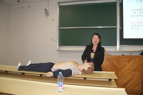 学院邀请校医院白莲萍大夫作《现场急救知识培训》。她从救护新概念、心肺复苏、创伤救护(四项技能)、意外事件的现场处理四个方面入手,用规范的语言和动作,给与会人员讲解如何利用4分钟黄金时间对病人实施及时、先进、有效的初步救护;详细讲解心肺复苏的救命技术和火灾、触电、溺水、心梗、踩踏、摔伤等现场救护原则。