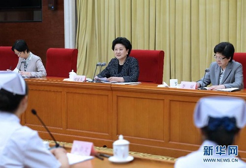 新闻中心讯 在“5﹒12”国际护士节前夕,中共中央政治局委员、国务院副总理刘延东与南丁格尔奖获得者和护理工作者代表在京座谈。她强调,护理是集人文关怀和专业技术为一体的职业,要落实党中央、国务院关于医疗卫生事业改革发展的决策部署,弘扬南丁格尔精神,坚持以病人为中心,不断提高护理服务水平,增进群众健康福祉。国家卫生计生委主任李斌主持会议。